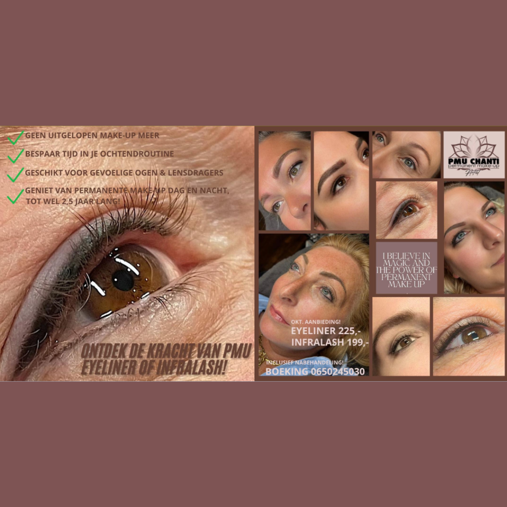 Onlangs heb ik een infralash laten zetten bij PMU Chanti. Ik draag niet veel make-up en heb hele lichte wimpers. Chantal van PMU Chanti adviseerde mij om een subtiel lijntje tussen mijn wimperhaartjes aan te brengen, zodat mijn wimpers voller lijken. Dit oogt natuurlijk en geeft een mooie uitstraling. De behandeling was niet pijnlijk, alleen een beetje spannend omdat het rond je oog gebeurt. Maar door de vaste hand van Chantal, had ik direct het vertrouwen dat ik mij geen zorgen hoefde te maken. Het resultaat is fantastisch !!!! Zelfs zonder mascara een mooie oogopslag.